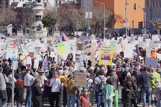 අමෙරිකාවේ ට්‍රම්ප් පරිපාලනයට සැන් ෆ්‍රැන්සිස්කෝ නගරයේදී විරෝධතාවක් පැවැත්වුණි.