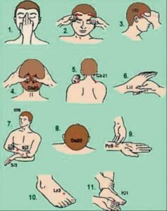 ඒ අනුව කන්පෙති, මුහුණ, දෙවුර, කොඳු ඇට පෙළ, දණහිස, දෙපතුල ආදී ස්ථානවල ඇති නිල තෙරපුමට ලක්කරයි.