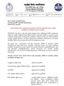 එමෙන්ම විකල්ප මාර්ග පිළිබඳව තොරතුරු අවශ්ය විටකදී රථවාහන පොලිස් නිලධාරින්ගෙන් සහාය ලබාගත හැකි බවද වැඩිදුරටත් දැනුම්දී ඇත.