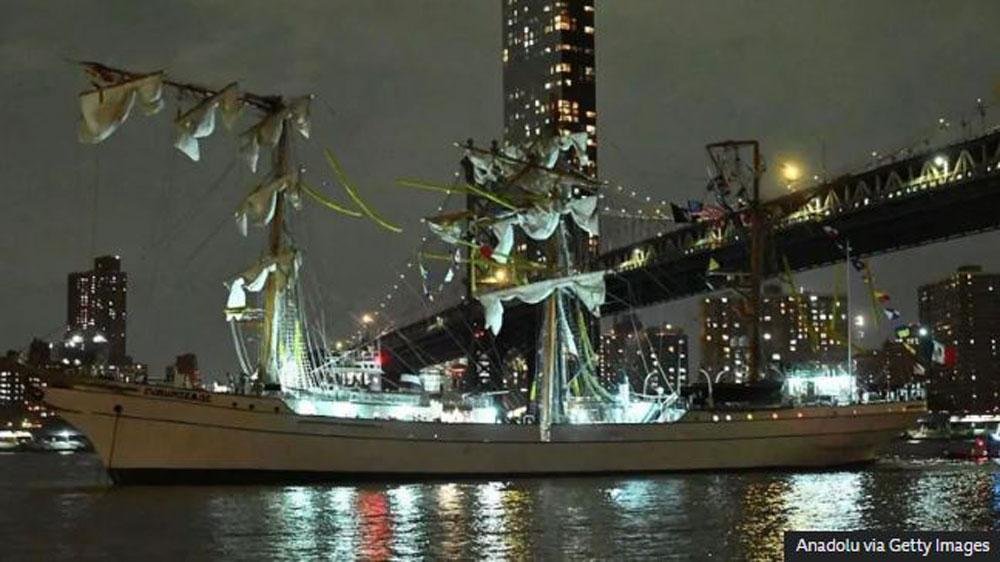 අමෙරිකා එක්සත් ජනපදයේ සංචාරයක නිරත වෙමින් තිබූ මෙක්සිකානු නාවික හමුදාවට අයත් දැවැන්ත පුහුණු නෞකාවක් නිව්යෝර්ක් නගරයේ බෘක්ලින් පාලමේ ගැටී තිබේ.