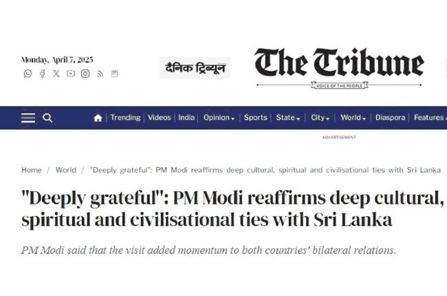 ශ්රී ලංකා සංචාරයේදී ලබා දුන් උණුසුම් ආගන්තුක සත්කාරයට ජනාධිපති අනුර කුමාර දිසානායක මහතාට, ජනතාවට සහ ශ්රී ලංකා රජයට අගමැති මෝදි සිය කෘතඥතාව පුද කළ බව ‘ද ට්රිබියුන්’ පුවත් සේවය වාර්තා කළේය.