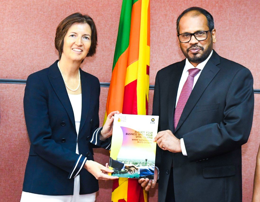 ලංකාවේ සහ මාලදිවයිනේ ස්විට්සර්ලන්ත තානාපතිනිය ආචාර්ය සිරි වෝල්ට් මහත්මිය ඇතුළු නිලධාරින් පිරිසක් පසුගියදා ශ්රී ලංකා අපනයන සංවර්ධන මණ්ඩලයේ(EDB) සභාපති මංගල විජේසිංහ මහතා ඇතුළු එහි නිලධාරින් පිරිසක් හමුවීය.