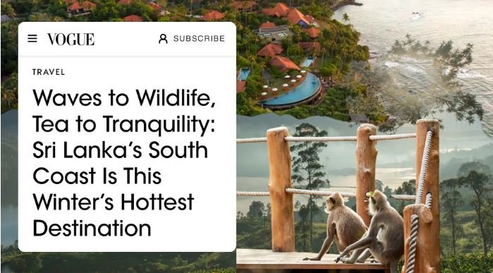 අන්තර්ජාතික ජීවන රටා පිළිබඳ තොරතුරු වාර්තා කරන සඟරාවක් වන ‘වෝග්’ (Vogue), ශ්රී ලංකාවේ දකුණු වෙරළ තීරය මෙම ශීත ඍතුවේ උණුසුම්ම සංචාරක ගමනාන්තය ලෙස නම් කර ඇත.
