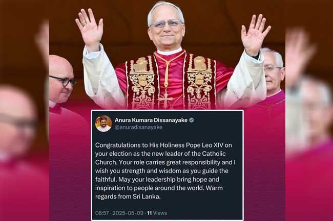අභිනව පාප් වහන්සේ ලෙස වතිකානයේදී ඊයේ (08) පස්වරුවේ තේරී පත්වූ අමෙරිකාවේ රොබට් ප්රෙවොස්ට් පාප් වහන්සේ වෙත සුබ
